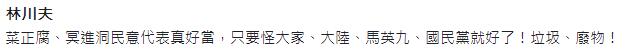 臺網友也紛紛看不下去,痛批“救災怎么會是黨產被抄空的在野黨?難不成蔡英文是被八二三炮戰給砸昏了,邏輯錯亂不成?”“好的領導者是讓人民越來越有錢,生活越來越好,聽到的只是干話,詐騙黨抹黑砍殺人民的生活財產,到處觀光蕭條,農民漁民損失慘重,騙票詐騙黨吃香喝辣,自己行不正還有廉恥說三道四,去摔你家的電視啊!”“怪東怪西,就是不自省”“把人家給抄家滅黨,你還要人家出來幫忙救災,你還是人嗎?”“千金小姐個性,專往外潑臟水。”