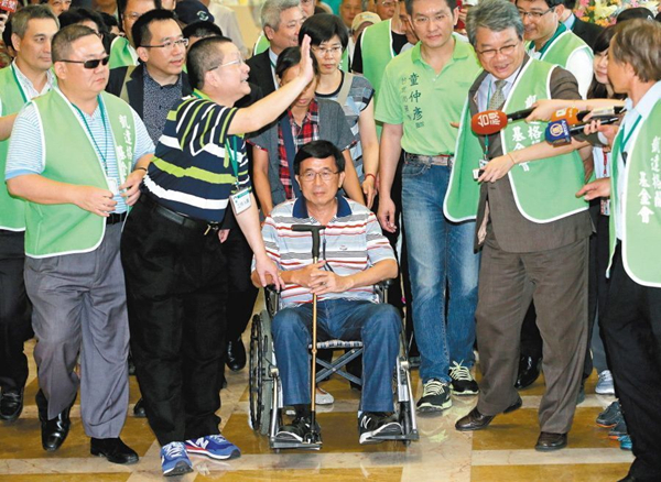 陳水扁參加兒子陳致中選造勢晚會。(圖片來源:臺灣《聯(lián)合報》)