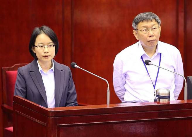 臺北市長柯文哲(右)與臺北農產運銷公司總經理吳音寧。(圖片來源:臺灣“中時電子報”)