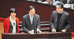 針對“通奸除罪化”議題,臺當局“文化部長”龍應臺(左)15日在“立法院”答詢中表示支持,“行政院長”江宜樺(中)認為可以討論,“內政部長”李鴻源(右)則顯得有些尷尬地表示,他沒個人看法。(來源:臺灣《中國時報》)