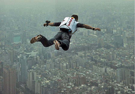 據(jù)臺灣《中華日報(bào)》報(bào)道,38歲的奧地利“定點(diǎn)跳傘”者Felix Baumgartner于11日在未得一O一許可,從508米高的臺北一O一高樓縱身跳傘。