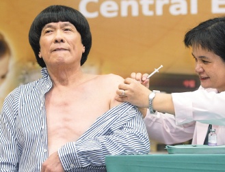 防疫大使豬哥亮接種疫苗。 來源:臺灣《聯(lián)合報》