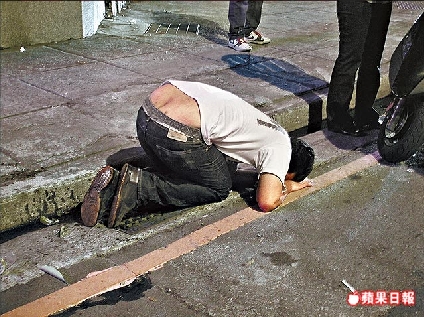劉男竟當街下跪請求未婚妻原諒,讓警員傻眼。(圖片來源:臺灣《蘋果日報》)