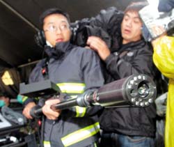臺(tái)灣三號(hào)高速公路滑坡,臺(tái)軍昨上午出動(dòng)“影像式生命探側(cè)儀”到現(xiàn)場待命。圖片來源:臺(tái)灣《聯(lián)合報(bào)》