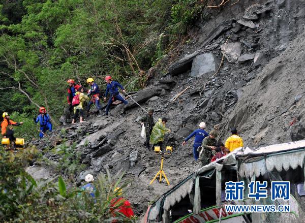 當(dāng)日,因臺(tái)風(fēng)導(dǎo)致臺(tái)灣蘇花公路塌方而被困的100多位大陸游客已陸續(xù)被救出安置,另有23位游客失去聯(lián)系,50多位游客等待救援,截至記者發(fā)稿時(shí),救援仍在繼續(xù)。新華社記者 何俊昌 攝