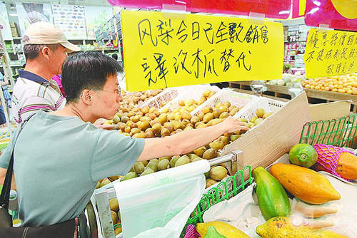 受塑化劑影響,現榨果汁正夯,使臺灣水果價格飆高,民眾到大賣場搶購較平價的新鮮水果。圖片來源:臺灣媒體
