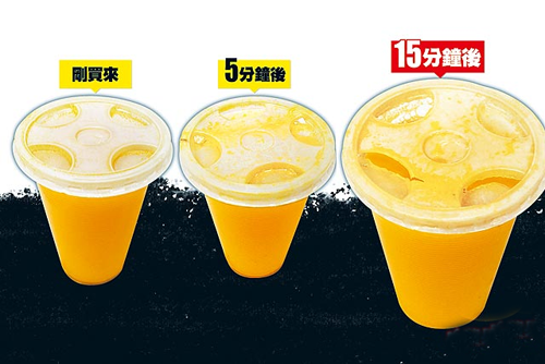 對(duì)于柳橙汁溶解杯蓋問(wèn)題,果汁店業(yè)者表示,先前曾接獲顧客反映,購(gòu)買的柳橙汁與檸檬汁會(huì)出現(xiàn)杯蓋溶解情形,曾向制造商反映但沒有解決,且杯子沒問(wèn)題,更換其他杯蓋不合用,“只能請(qǐng)客人趕快喝掉!”