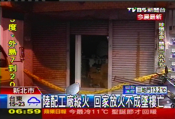 中國臺灣網(wǎng)12月24日消息 據(jù)臺灣TVBS電視臺報道,臺灣新北市一名大陸籍女子,昨(23日)天下午到上班的工廠縱火后,回到家中支開老公、小孩,又企圖在房間放火,結(jié)果火沒燒起來,她選擇打開窗戶,一躍而下,結(jié)束寶貴生命。工廠的鄰居說,婦人尋短很有可能是因為與公婆不和,至于婦人縱火、尋短的真正原因為何,檢警還要調(diào)查。