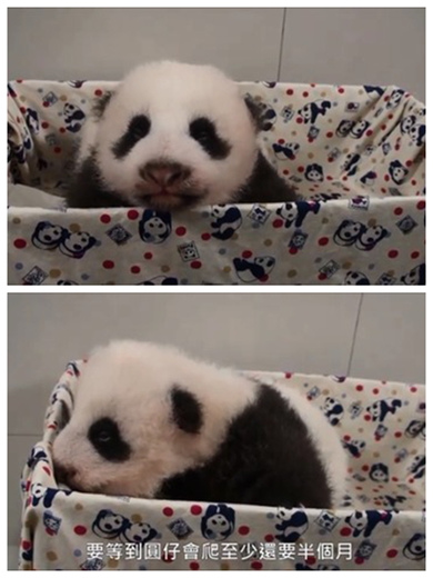 據臺灣媒體報道,大陸贈臺大熊貓所生幼崽“圓仔”生出來已經快滿兩個月了,目前還停在雙眼迷蒙等階段,臺北動物園今天照例公布它最新影片,說明圓仔要會爬,至少還要再等半個月。