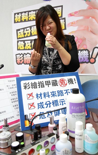 國民黨“立委”江惠貞指坊間販賣彩繪指甲材料問題重重。(圖片來自臺媒)