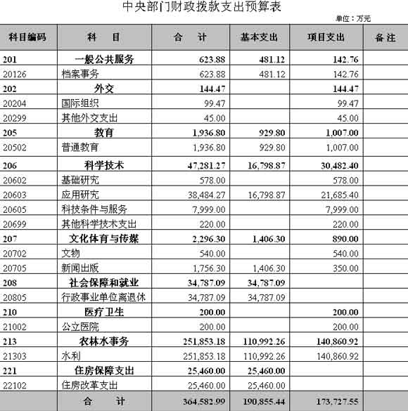 科學技術支出。主要用于水利部直屬科研單位正常運轉的在職及離退休人員支出和公用支出、重點實驗室及相關設施運行維護、科研單位房屋維修、科研設備購置、開展水利公益性科學研究和其他水利應用研究等支出。