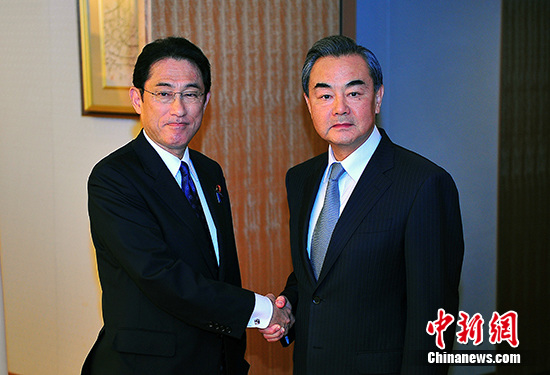中國外交部長王毅8月24日在東京出席中日韓外長會議之后,會見了日本外相岸田文雄。中新社記者 王健 攝
