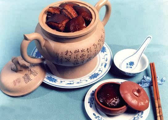 外婆家著名菜品:茶香雞、外婆紅燒肉等。