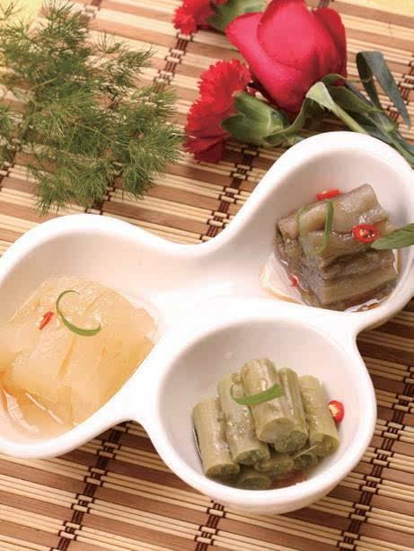寧波“三臭”指的是臭冬瓜、臭莧菜梗、臭菜心(臭芋艿蓊),其最大特點是“聞聞是臭的,吃吃是香的”。寧波人食“臭”歷史悠久,清代范宣《越諺》的“莧菜梗”中寫道:“莧見《易夫卦》,其梗如蔗段,腌之氣臭味佳,最下飯!薄叭簟敝谱髟砀B興的霉豆腐、霉千張、霉筍相似,但風味不一樣。