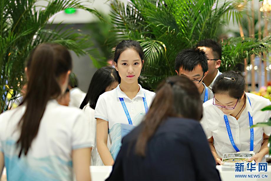 9月4日至5日,二十國(guó)集團(tuán)領(lǐng)導(dǎo)人杭州峰會(huì)在浙江杭州舉行。全球媒體人匯聚一堂,關(guān)注報(bào)道峰會(huì)盛況。在G20杭州峰會(huì)新聞中心,200多位志愿者身著青白色運(yùn)動(dòng)服,男生外套上藍(lán)下白,象征層巒疊嶂;女生外套上白下藍(lán),意味水波蕩漾。兩者輝映,體現(xiàn)了杭州這座古城湖光山色的獨(dú)特風(fēng)韻。“小青荷”是此次峰會(huì)志愿者的代名詞。這個(gè)名字取自宋代詩(shī)人楊萬(wàn)里描寫(xiě)杭州的詩(shī)句“接天蓮葉無(wú)窮碧,映日荷花別樣紅”,“青荷”也音同“親和”,他們成了G20杭州峰會(huì)新聞中心里一道亮麗的風(fēng)景。新華網(wǎng) 祝立銘 攝 圖片來(lái)源:新華網(wǎng)