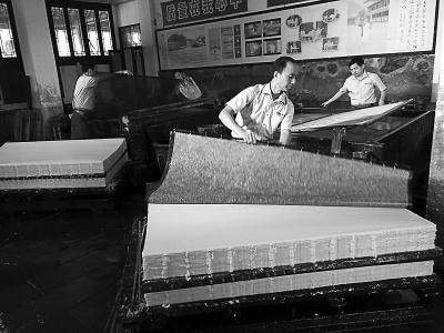 “一開始當撈紙工,我前兩個月沒完成任務。只掙到十幾塊錢,基本等于白干。宣紙廠采取計件工作制,每天工作定額是800張合格紙,只有下限,不設上限。因為我技術動作不熟練,廢品率就高。要么是從水槽撈出的紙張厚薄不均(導致分量不夠標準),要么是紙上有水皺(皺褶)、水泡(鼓泡)或水洞(窟窿)。出師不利,我才知道,跟以前自己下地種田插秧不同,撈紙可不是那么容易的事。這里面還真有些高深的門道呢。”