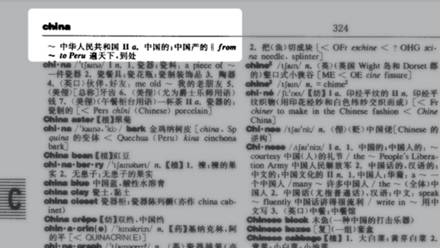央視新聞客戶端在查閱《英漢大辭典》(陸谷孫主編2007年第2版)時,于第324頁發(fā)現(xiàn)在China“中國”詞條下,列出了“from China to Peru”,其中文解釋為“遍天下,到處”。