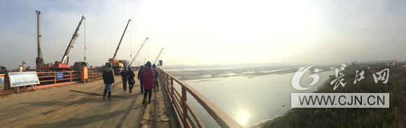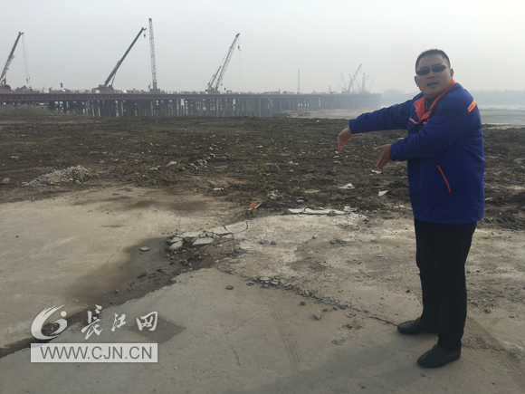 藕長(zhǎng)洪介紹正在修建的青山長(zhǎng)江大橋 李贏攝