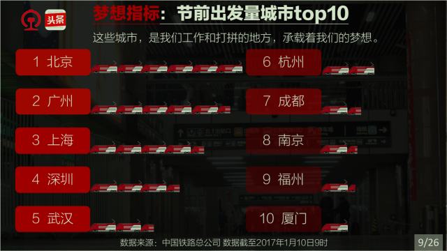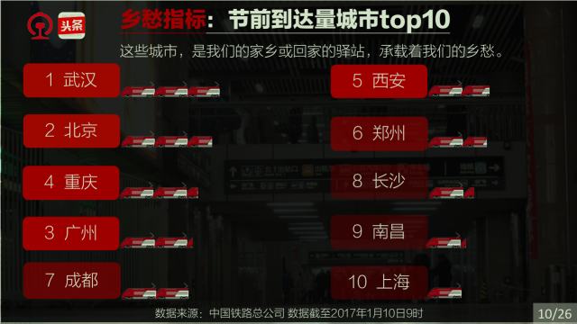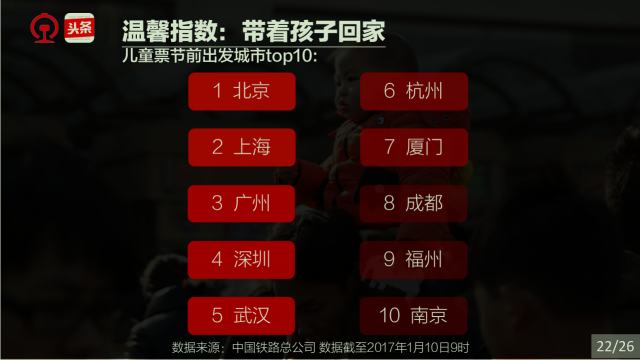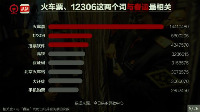 春運是社會,春運是文化,春運縮影國與家。一年一度的春運,承載著國人的情感、目光和腳步。他們在關注著什么,他們的出行有什么規律,哪些城市、哪些人群又和春運關聯度最高。中國鐵路和今日頭條通過對2017年春運鐵路購票數據和今日頭條客戶端閱讀數據的分析,告訴你一個縮影國與家的春運。