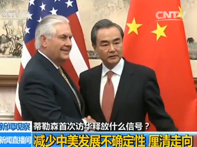 在雙邊關(guān)系上,此訪也為兩國領(lǐng)導人未來會晤鋪路。此前,中美兩國元首在通話中,已就各自核心關(guān)切達成重要共識。作為美國總統(tǒng)特朗普內(nèi)閣第一位訪華的成員,蒂勒森將為下階段如何落實兩國領(lǐng)導人的共識努力,而且推動中美領(lǐng)導人直接會晤。
