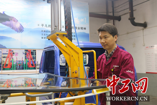 改進氣動沖孔夾具,將原有0.5mm的誤差范圍精確到0.01mm;領銜輕卡車門智能包邊夾具的設計制作,將車門包邊厚度嚴格控制在工藝要求包邊厚度4±0.1mm范圍內,為公司創造經濟效益達到253.11萬元;設計制作前風窗玻璃氣動機械臂,使工友在搬運與安裝重達17.89kg的玻璃時,得心應手……