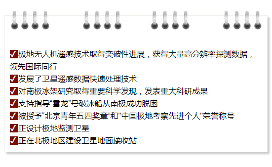 過去五年,我國極地研究工作取得突飛猛進的發展。我帶領團隊發展的衛星遙感數據快速處理技術,對南極冰架進行研究,取得了重大科研成果,發表在美國科學院院報,是我國極地氣候研究的標志性成果。2014年,該技術支持指導被困南極重冰區的我國“雪龍”號破冰船,依靠自身努力,成功自救脫困。