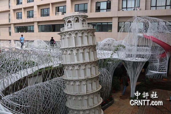 園區內的特色休閑場所—全部由鋼筋搭建設計而成。(圖片來源:中評社)