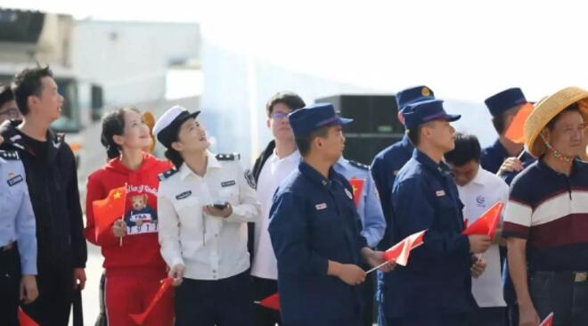 三沙市永興學校小學生胡楚涵和她的同學們、三沙衛視主持人團、“三沙1號”船工作人員、駐島工作人員、漁民依次加入演唱,清脆稚嫩的童聲與深情的歌聲交融,伴著海風,伴著朝陽,這專屬于中國人的旋律緩緩流淌。激昂的歌聲、揮動的國旗將碼頭渲染成了激情澎湃的“紅色”海洋,讓在場的每顆中國心都熱血沸騰。