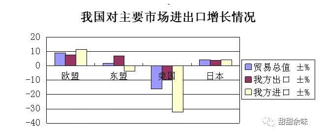 從海關(guān)總署數(shù)據(jù)來看,幾個主要市場,除了中美貿(mào)易總值降幅明顯,與歐盟、東盟、日本總體都有回升,與歐盟及東盟的貿(mào)易總值分別占到我外貿(mào)總值的16.2%、12.8%,都超過了中美貿(mào)易總值的占比11.6%。