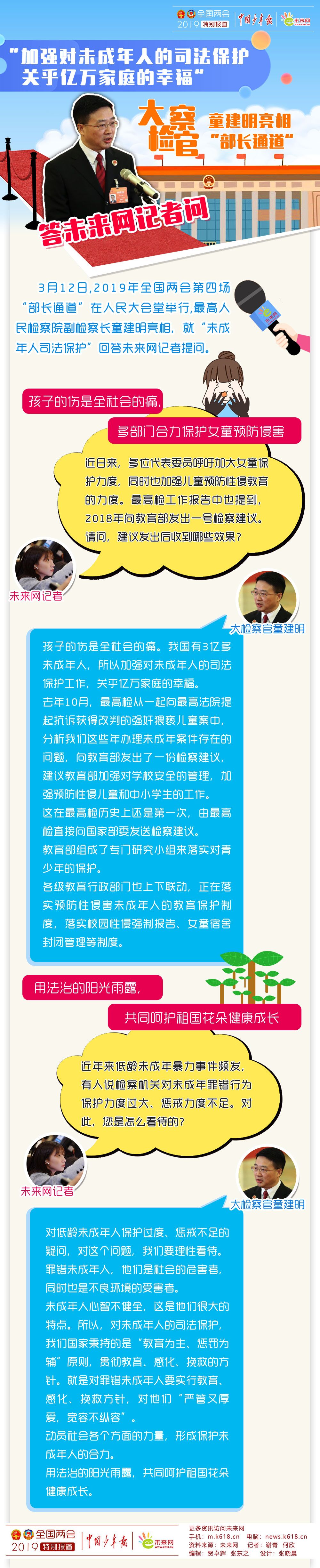 3月12日,最高人民檢察院副檢察長童建明就“未成年人司法保護”回答未來網記者提問。