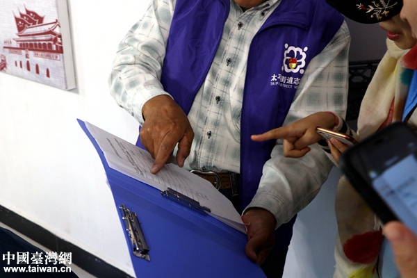 66歲的沈橋村村民王金坤向記者展示志愿者名單。(中國臺灣網 尹賽楠 攝)