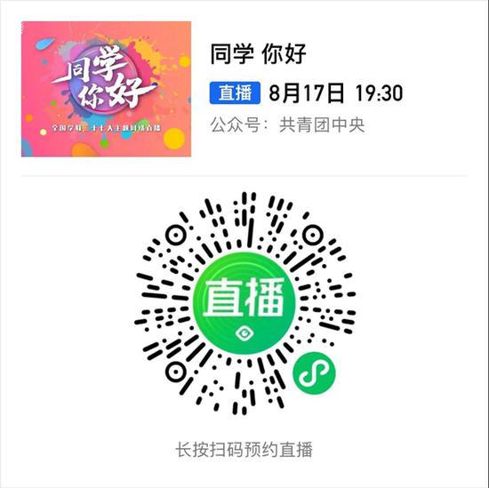 全國學聯與你同拼搏,同前進,共享這場青春盛會。長按下方圖片掃碼預約直播吧,不見不散!