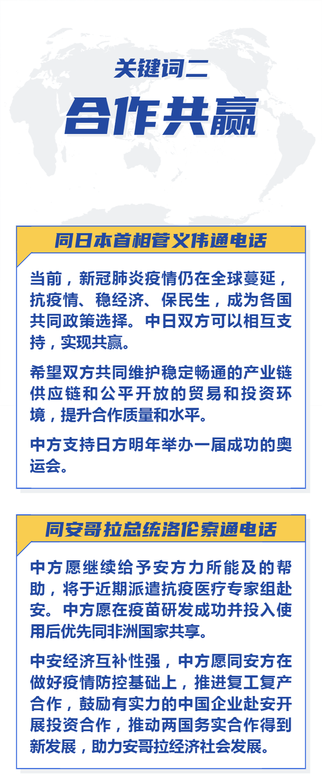 據(jù)新華社9月25日電,習近平主席當晚分別同日本首相菅義偉、安哥拉總統(tǒng)洛倫索通電話。