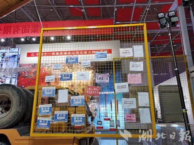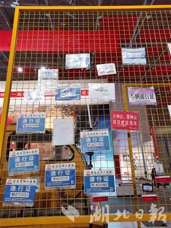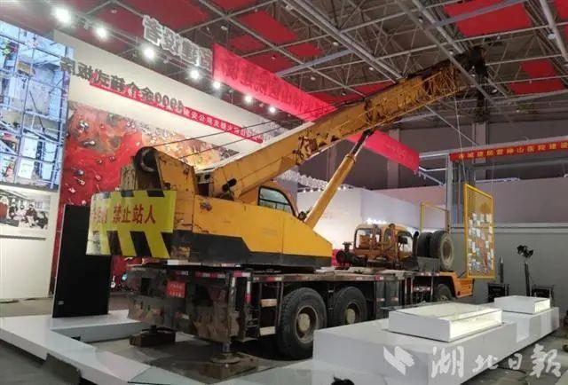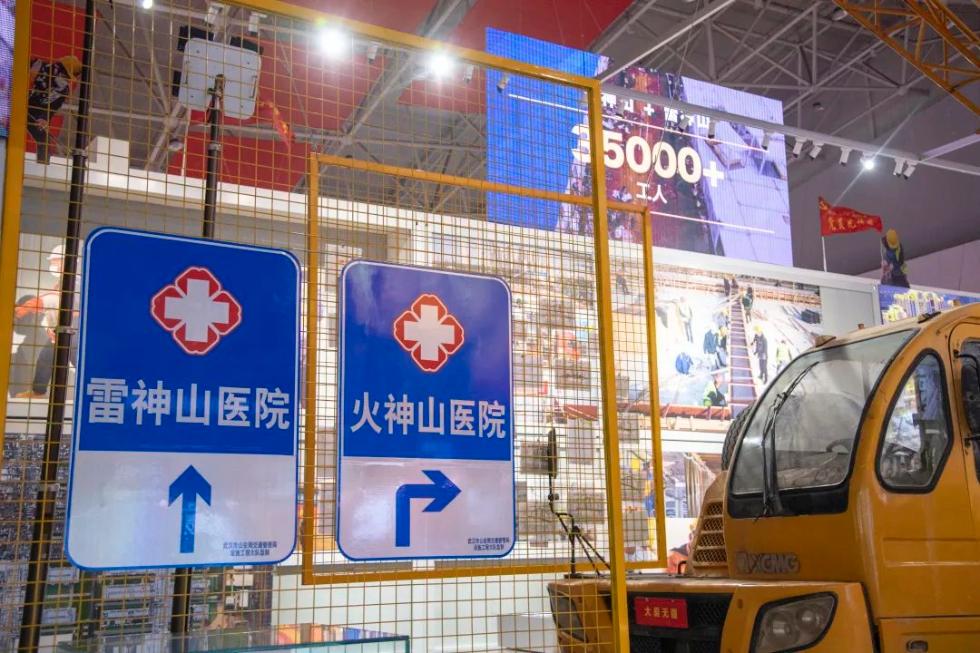 展覽還原火神山醫院、雷神山醫院建設的場景,大型吊車、病房、車輛通行證、工作服等實物均被搬到現場。