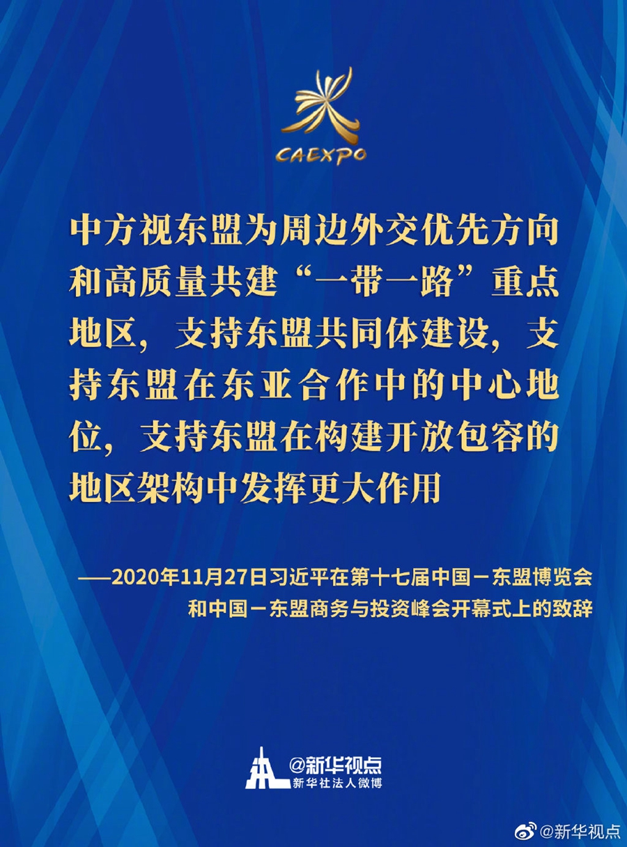 第十七屆中國-東盟博覽會和中國-東盟商務(wù)與投資峰會開幕式11月27日在廣西南寧舉行。國家主席習(xí)近平在北京以視頻方式發(fā)表致辭。一起來劃重點(diǎn)