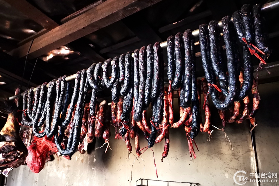 吉地爾子家的廚房里,掛滿了曬好的臘肉和香腸。(中國臺灣網 尹賽楠 攝)