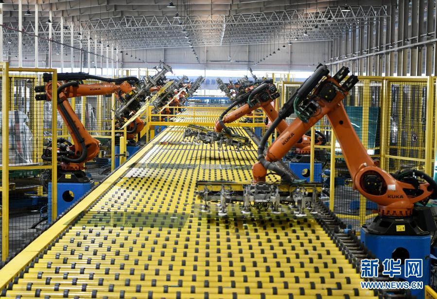 在福建省福清市的福耀玻璃集團汽車玻璃生產(chǎn)車間,機械手在生產(chǎn)線上作業(yè)(2021年1月12日攝)。新華社記者 姜克紅 攝