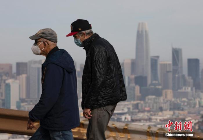 當地時間1月1日,美國加州舊金山市民佩戴口罩在一處公園休閑。中新社記者 劉關關 攝