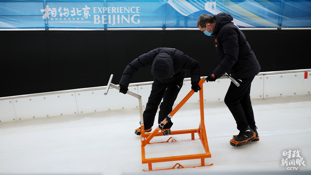 △國家雪車雪橇中心,制冰師對賽道冰面做精細(xì)修整。(總臺國廣記者李晉拍攝)