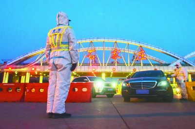 1月6日晚,石家莊市裕華高速口,執勤民警在逐一排查進入市區車輛。趙杰攝/光明圖片