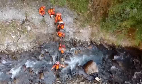 西藏森林消防總隊吉隆駐防分隊分隊長 洛桑旺久:像我這樣進入林子以后,然后每隔20米左右,你們要用就是用漆也可以,如果實在沒有漆,你們拿身上的一些布料或者我們利用砍刀在樹上做個標記。
