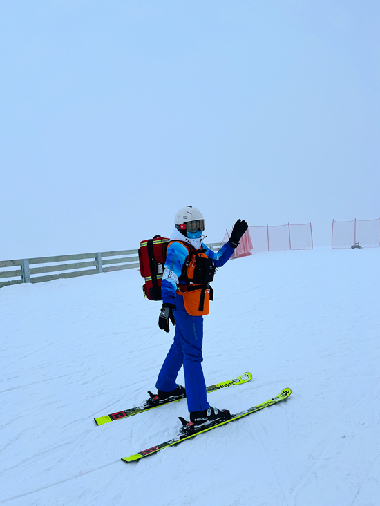 楊嬌楠在延慶賽區(qū)擔(dān)任滑雪醫(yī)生。楊嬌楠/供圖