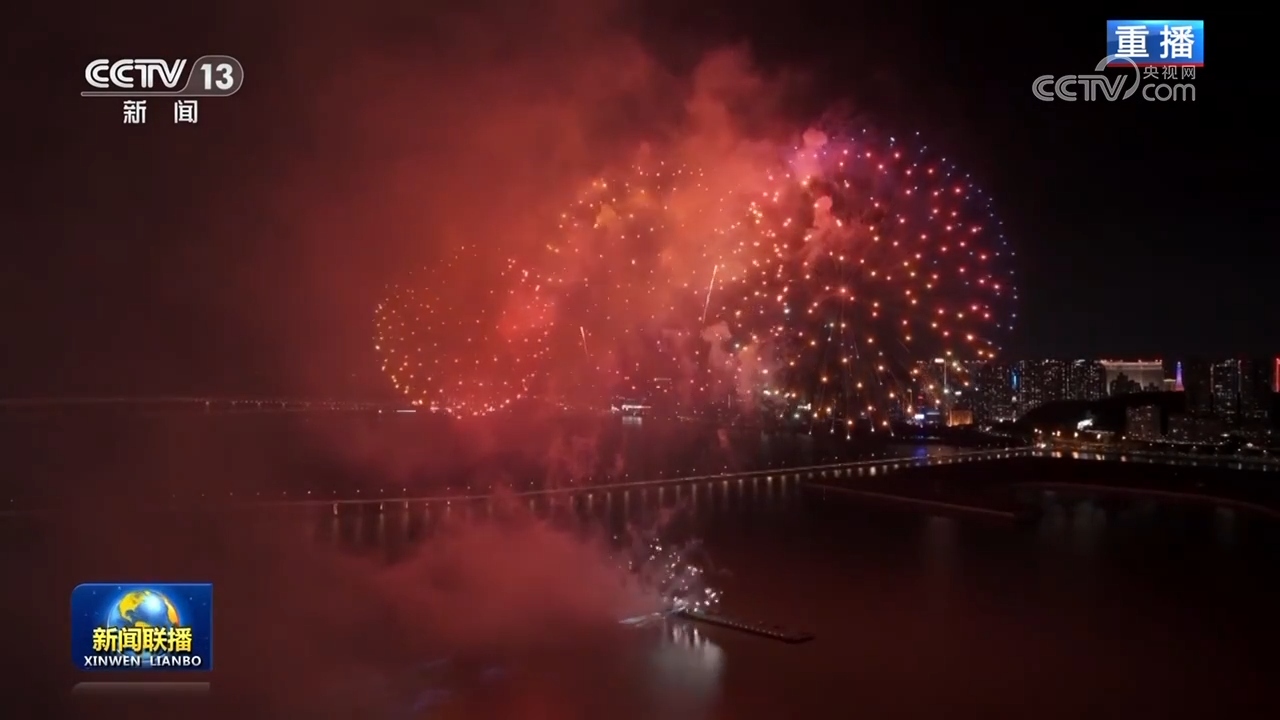 10月1日,香港在維多利亞港舉行國慶煙花匯演,超過3萬枚煙花照亮夜空。匯演中還特別融入了東江水、大熊貓和全運會等元素,吸引眾多市民和游客前來觀看。在澳門,伴隨《七子之歌》等歌曲,不同造型的煙花在夜空中綻放,表達對祖國的美好祝福。當晚還舉行了“火樹銀花嘉年華”,為觀眾提供更多觀賞樂趣。