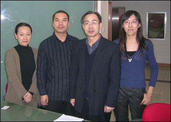 2006年12月31日,中國社會科學(xué)院臺灣研究所王建民研究員(右二)接受中國國際廣播電臺采訪。(圖片來源:國際在線)