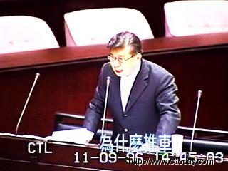 張顯耀在臺“立法院”質(zhì)詢張俊雄。(東森新聞圖)