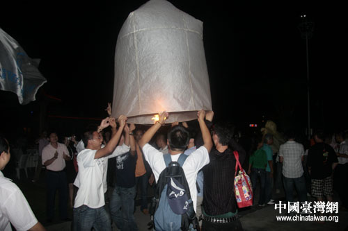 兩岸學子們齊心協力放飛孔明燈