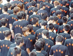 調查顯示,臺灣初一學生自承有吸毒及參加幫派者比例偏高;每逢道上大哥出殯,便有一群群黑衣青少年參加,可見一斑。(臺灣《中時報》圖片)