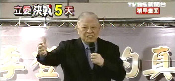 中國臺灣網(wǎng)1月7日消息 據(jù)臺灣TVBS報道,臺灣地區(qū)“立委”選戰(zhàn)進(jìn)入最后倒計時,各個政黨都推出強(qiáng)打廣告,做最后沖刺,臺聯(lián)黨精神領(lǐng)袖李登輝,下午也推出新廣告。