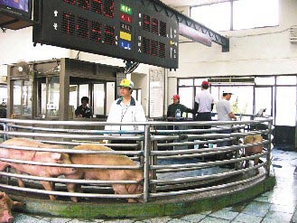 宜蘭縣肉品市場為了搶外縣市的豬到宜蘭拍賣,昨天起實施拍賣新制,調(diào)高拍賣基準價,市場零售價將跟著上漲。臺灣《聯(lián)合報》記者戴永華攝