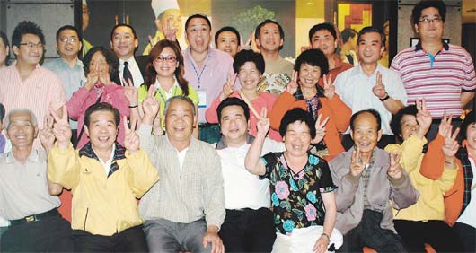 臺祥鶴旅游團(tuán)11名首批脫困團(tuán)員,昨天晚上接受成都市臺商協(xié)會(huì)宴請,許多團(tuán)員合影時(shí)比出“ya”手勢,慶幸歷劫歸來。(中央社) |